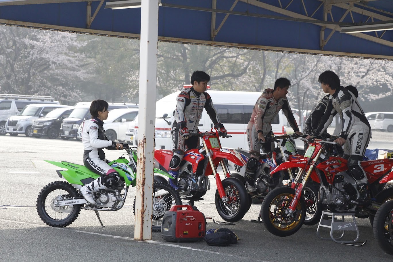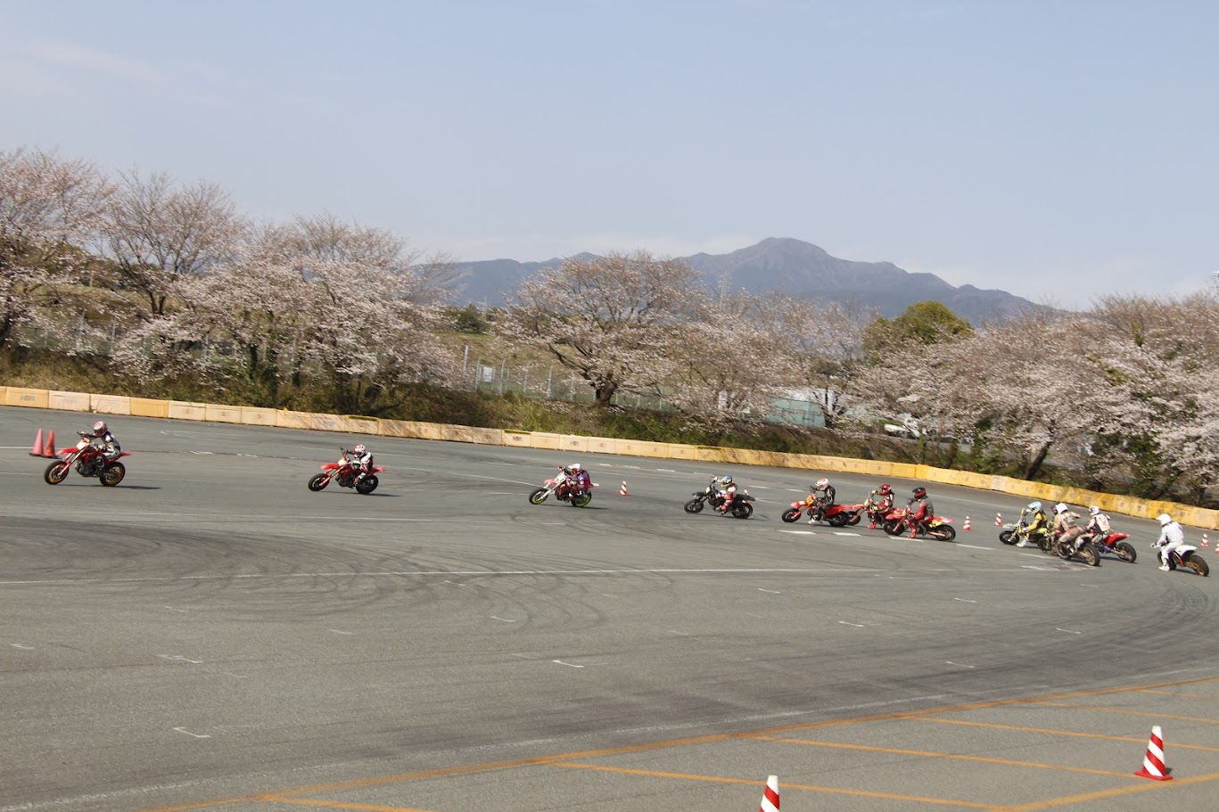 丁度桜の開花時期で、春限定のモタードスクールとなりました🌸